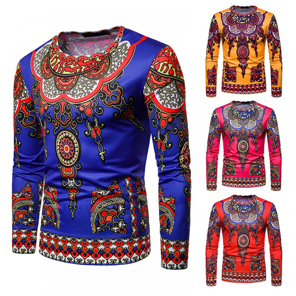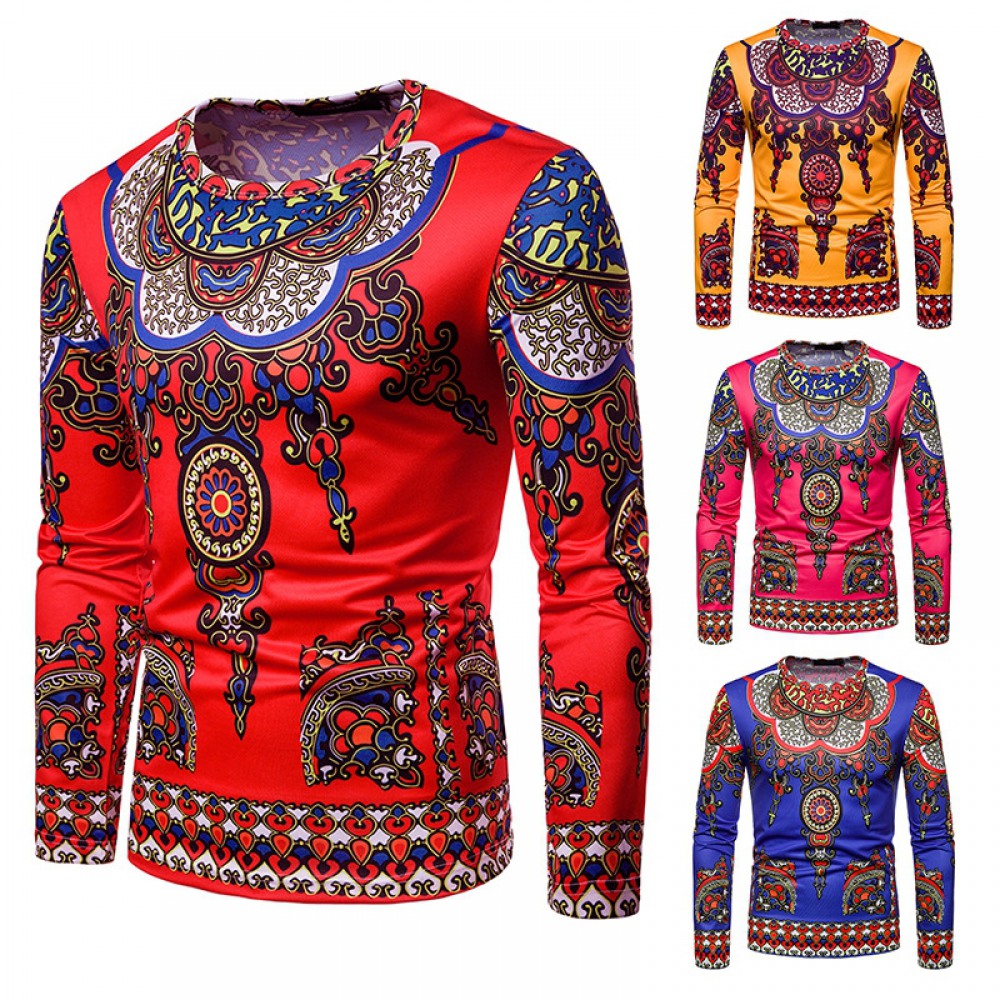 3D Ethnic Style Printing Long-Sleeved Round Neck T-Shirt