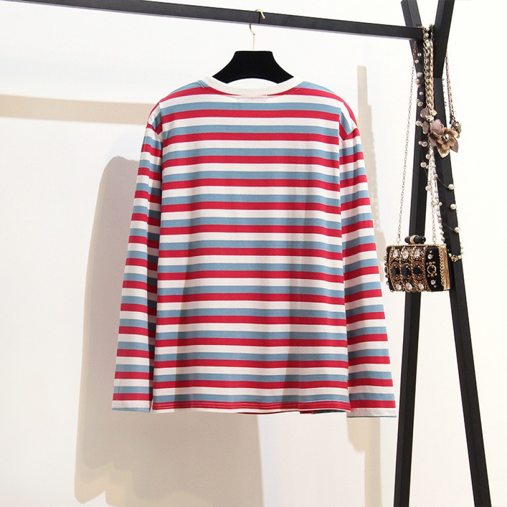 Plus Size Bottoming Shirt Female Fat Sister New Loose Round Neck Embroidered Long Sleeve T-Shirt for Women