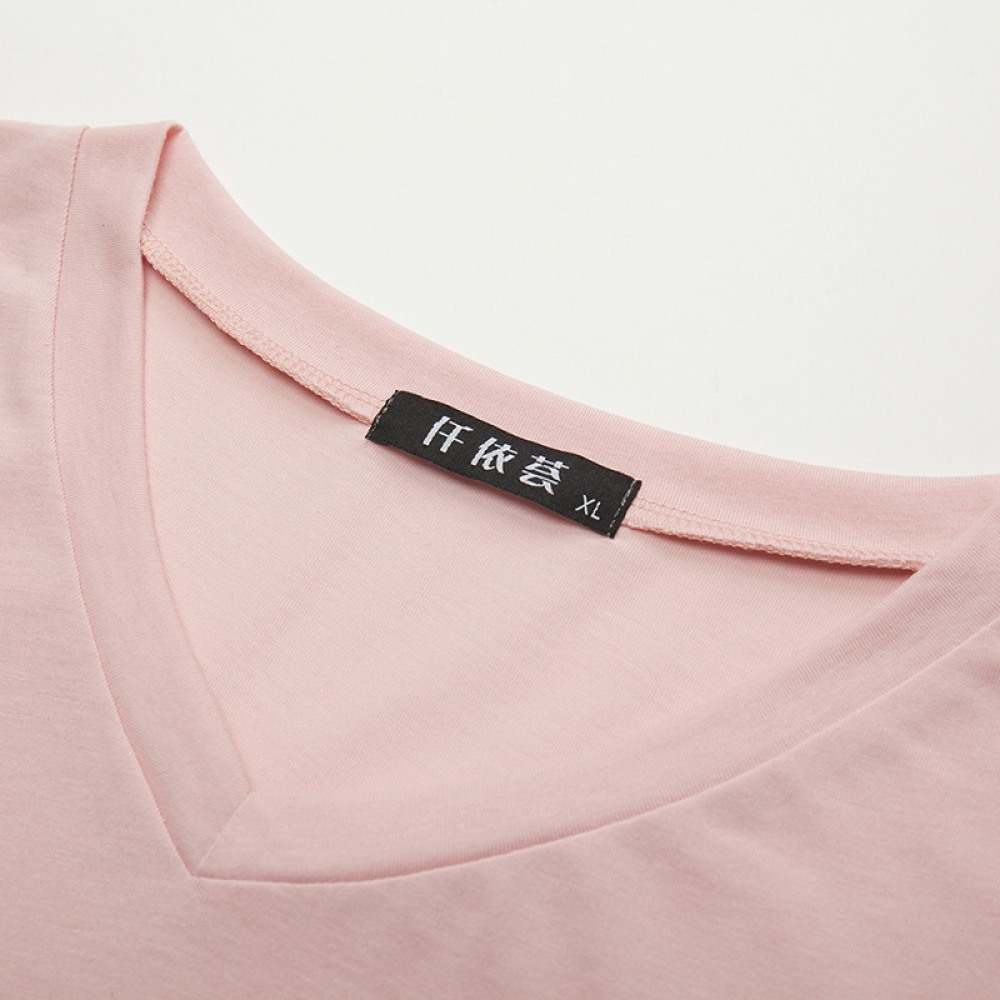 Plus Size Women's Fat Summer New Solid Color Basic V-Neck Short-Sleeved T-Shirt Women
