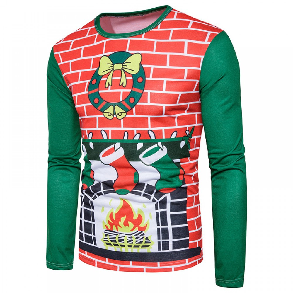 Men's New Christmas Round Neck 3D Personality Printing Long-Sleeved T-Shirt