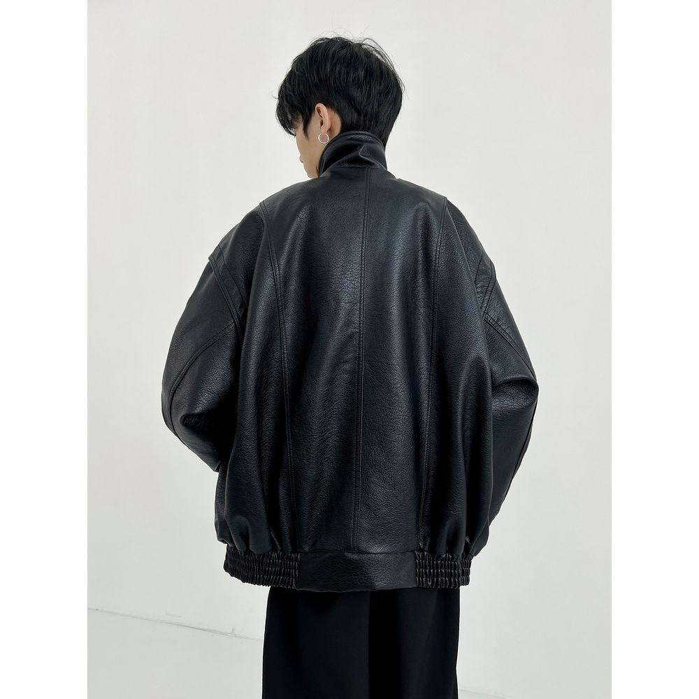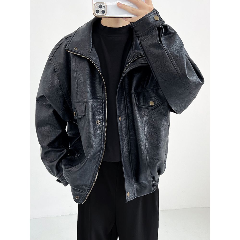 Men's Waterproof Leather Motorcycle Jacket With Stand Collar