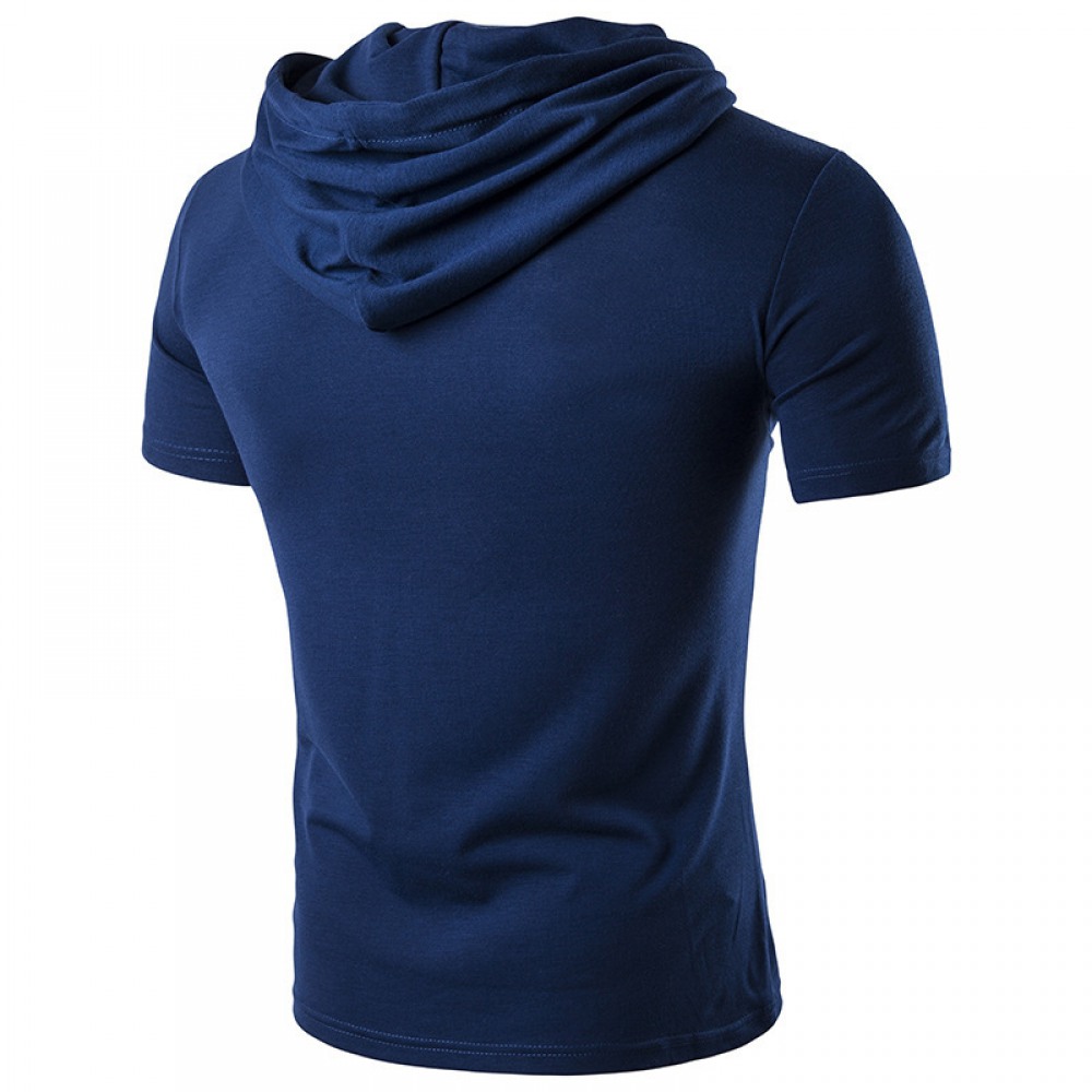 Men's Long-Sleeved Hooded Sleeves Color Matching Fashion Slim T-Shirt