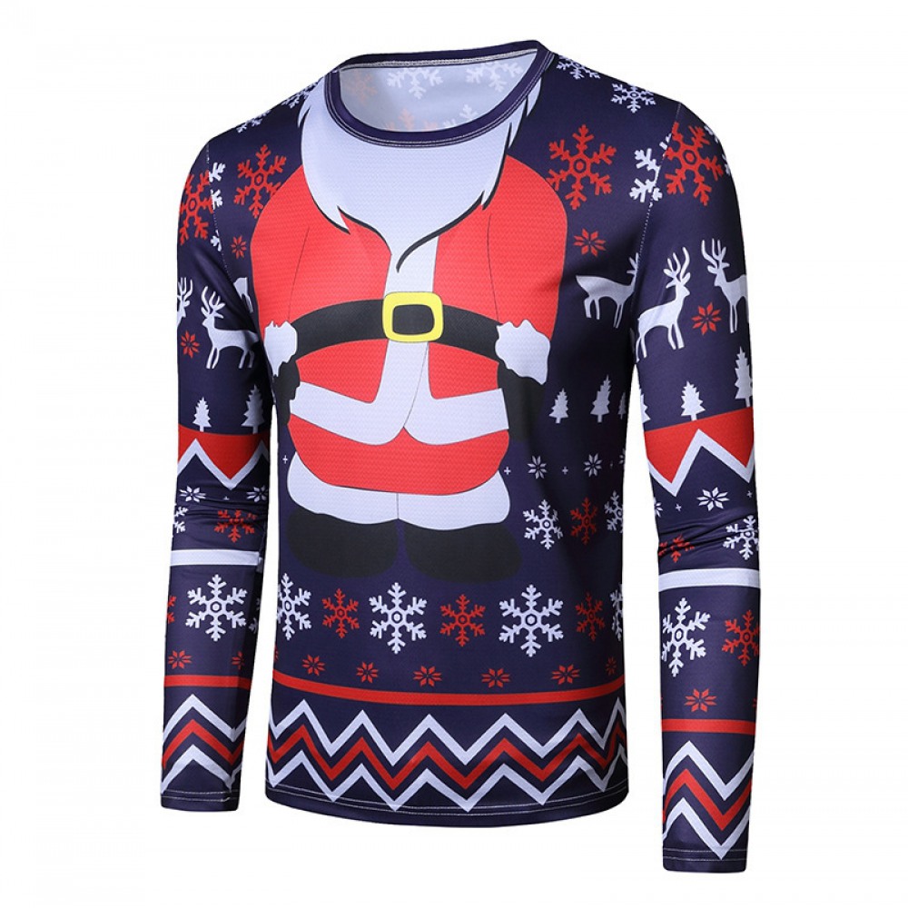 New 3D Personality Printing Fashion Men's Christmas Pattern Long-Sleeved T-Shirt