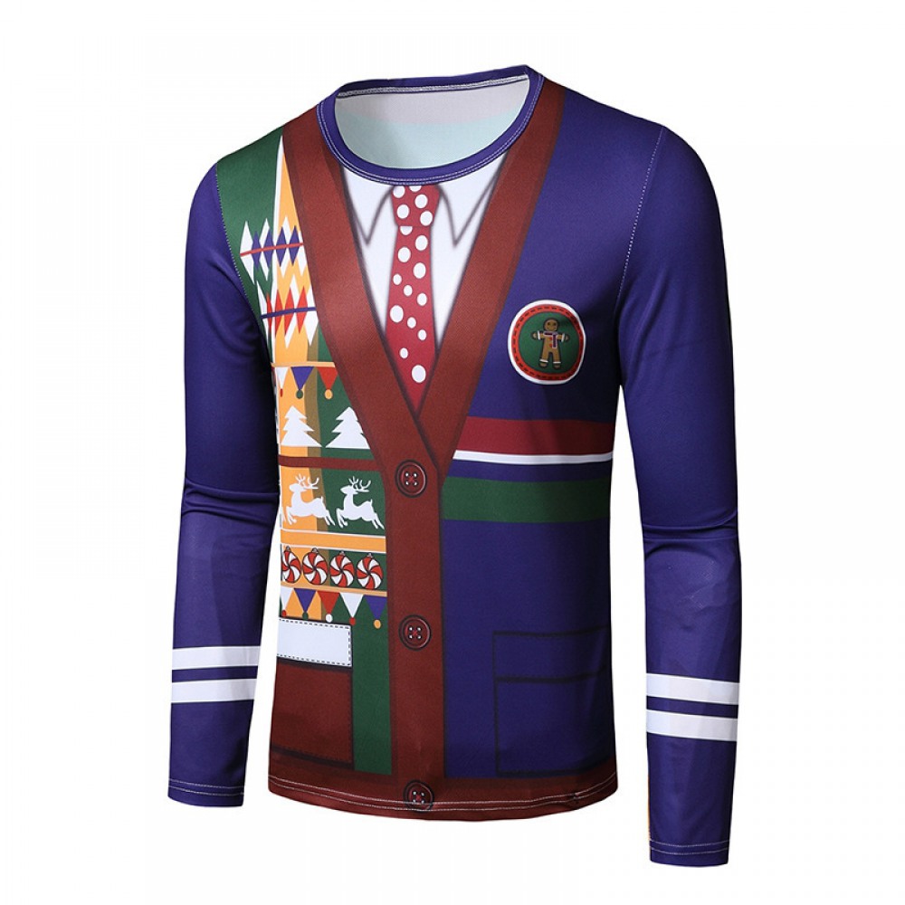New 3D Personality Printing Fashion Men's Christmas Long-Sleeved T-Shirt