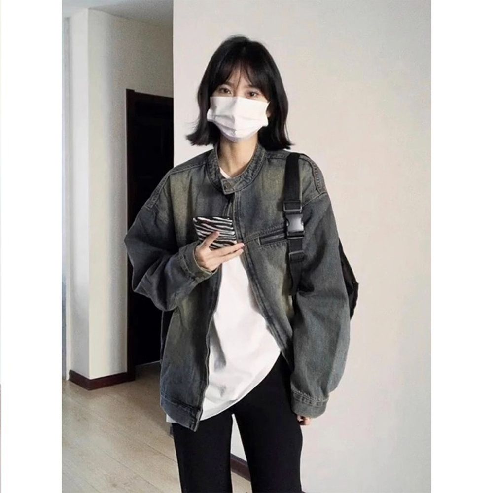 Retro Round Neck Blue Short Denim Jacket Loose And Slim
