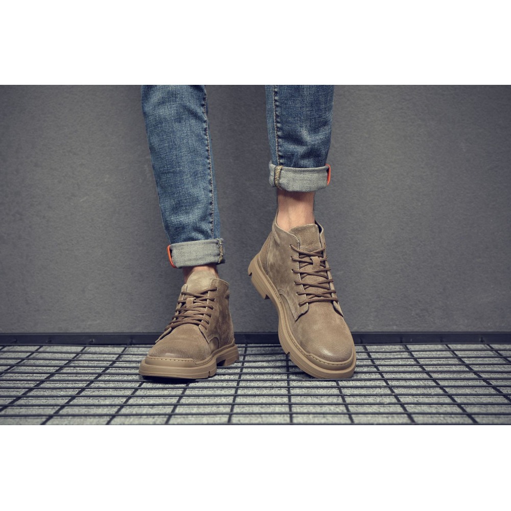 Martin Boots Men's Leather Short Boots Casual Trend Tooling Boots Autumn and Winter High-Top Mens Shoes