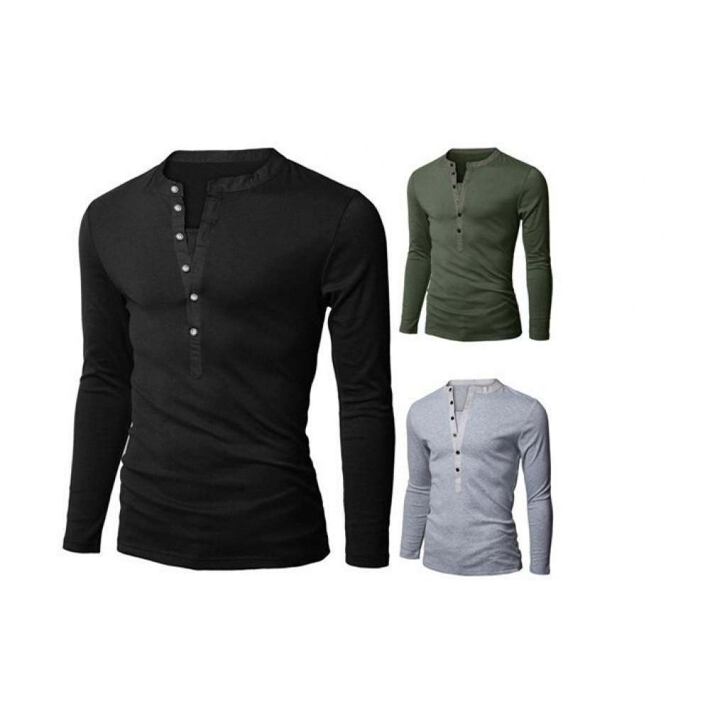Men's 6 Button Slim Long Sleeve T-Shirts Autumn and Winter New Hot Sale Men's T-Shirts