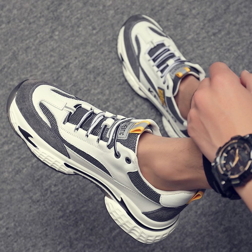 Men's Shoes Leather Fashion Casual Trendy Shoes Autumn Men's Sports Shoes Thick Soles Increased Breathable Mesh