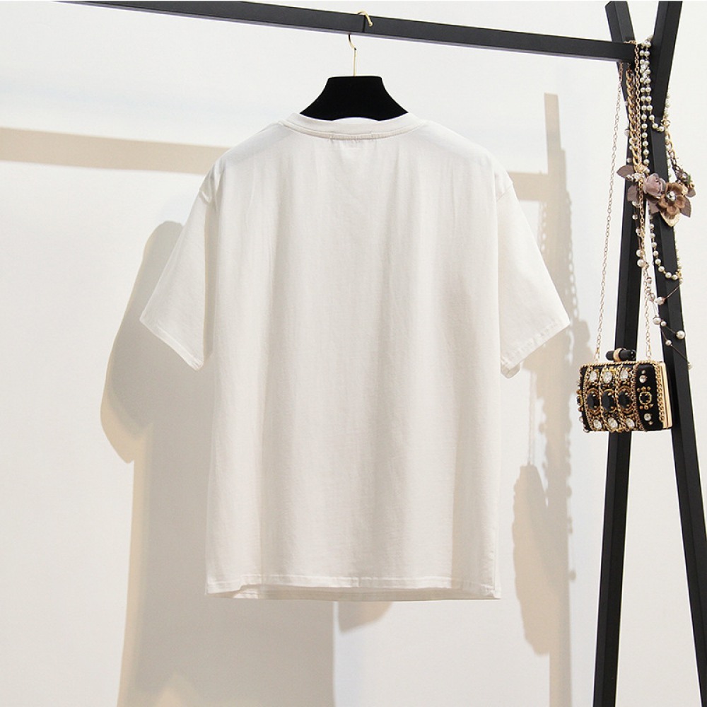 Fat Plus Size Women's Pure Color Wild Thin Love Printing Short-Sleeved T-Shirt Women