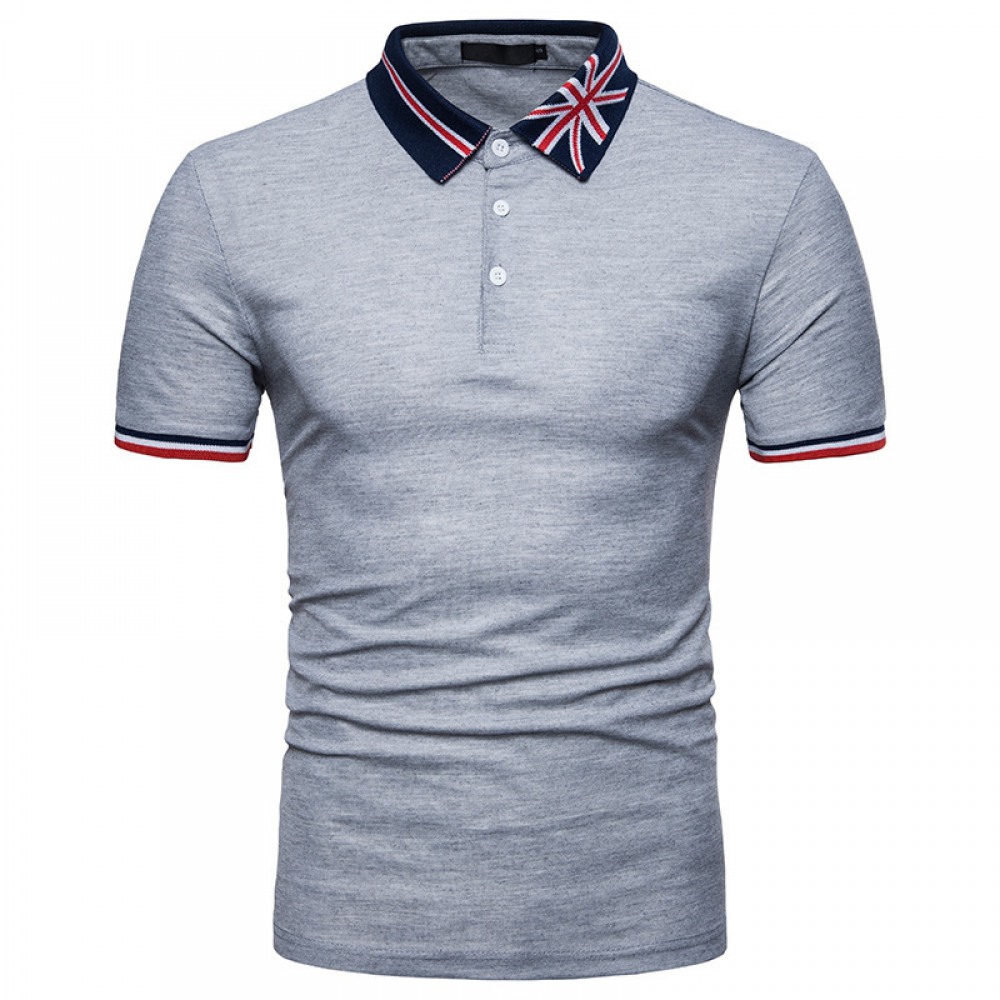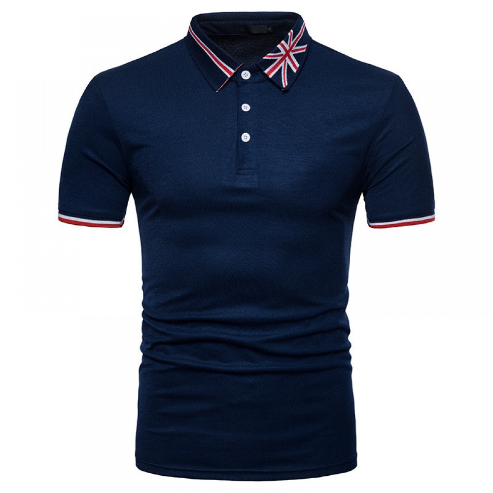 Casual Men's T-Shirt Short Sleeve Lapel Polo Shirt British Style